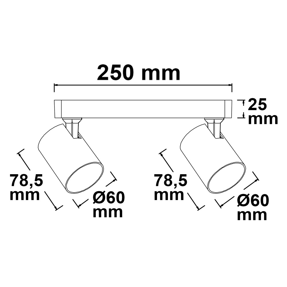 Plafonnier de 2 projecteurs LED orientable, corps blanc mat, IP20, pour recevoir des sources GU10