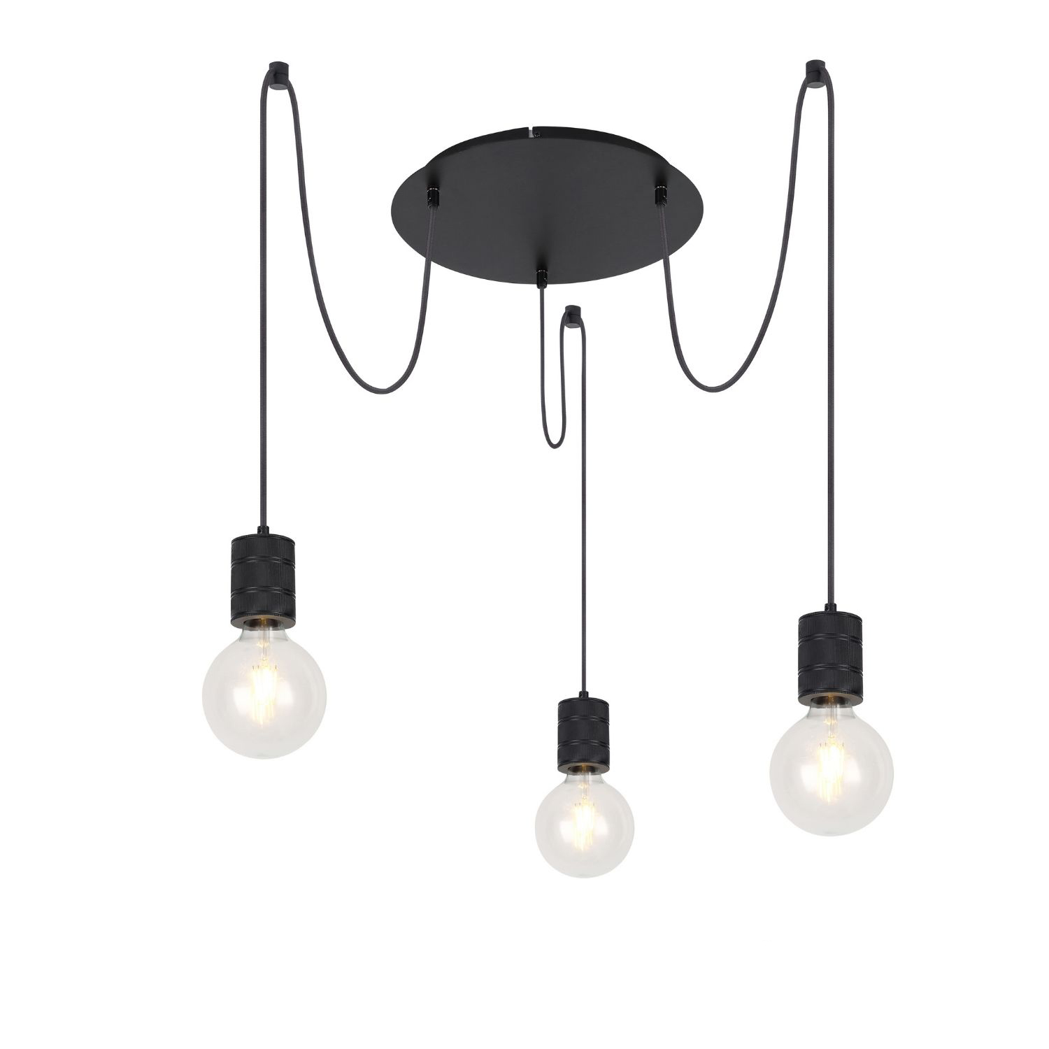 Suspension LED ronde noir mat, 3xE27 douille, sans ampoules